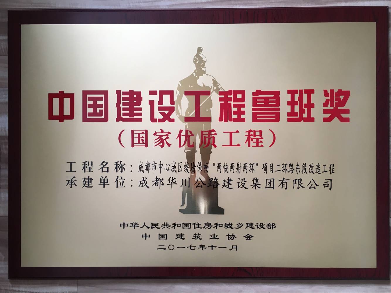 11月5日至7日,紀念魯班獎創立30周年暨2016~2017年度創精品工程交流會在北京舉行,會上宣讀了《住房和城鄉建設部關于2016~2017年度中國建設工程魯班獎(國家優質工程)獲獎單位的通報》,集團承建的“成都市中心城區緩堵保暢‘兩快兩射兩環’項目二環路東段改造工程”榮獲2016~2017年度中國建設工程魯班獎。