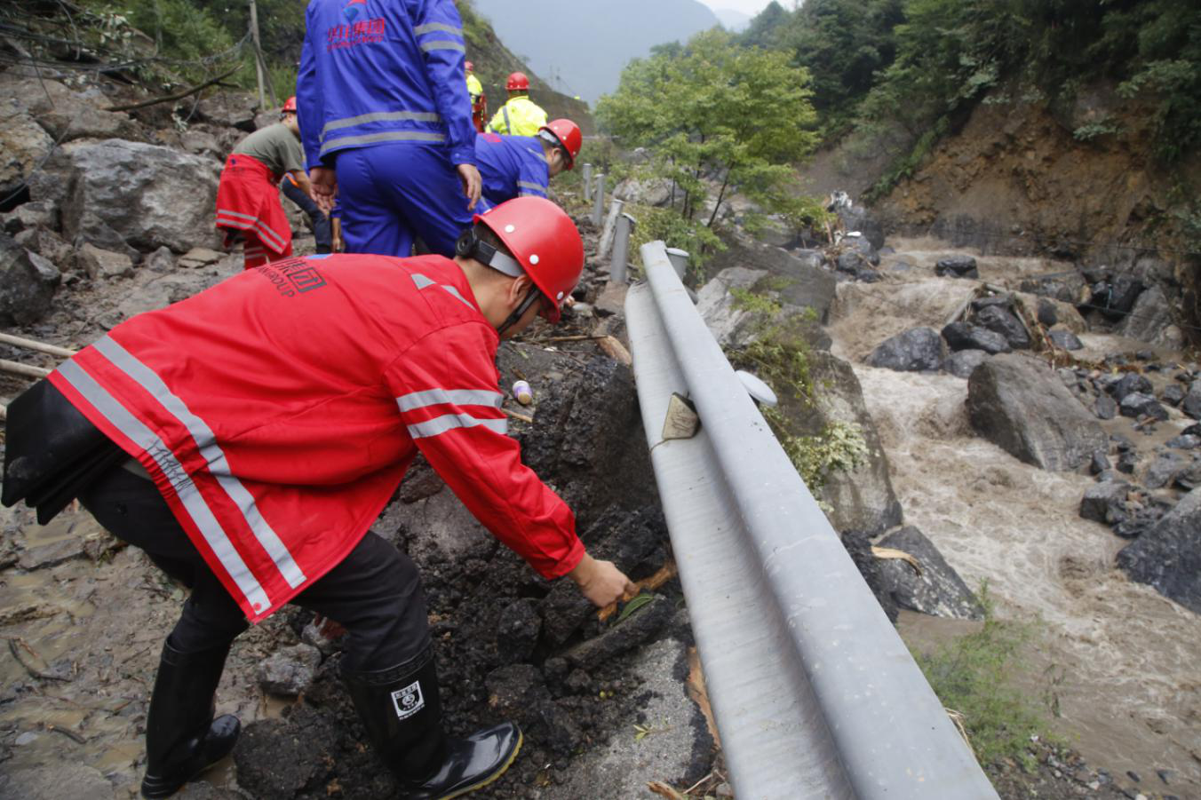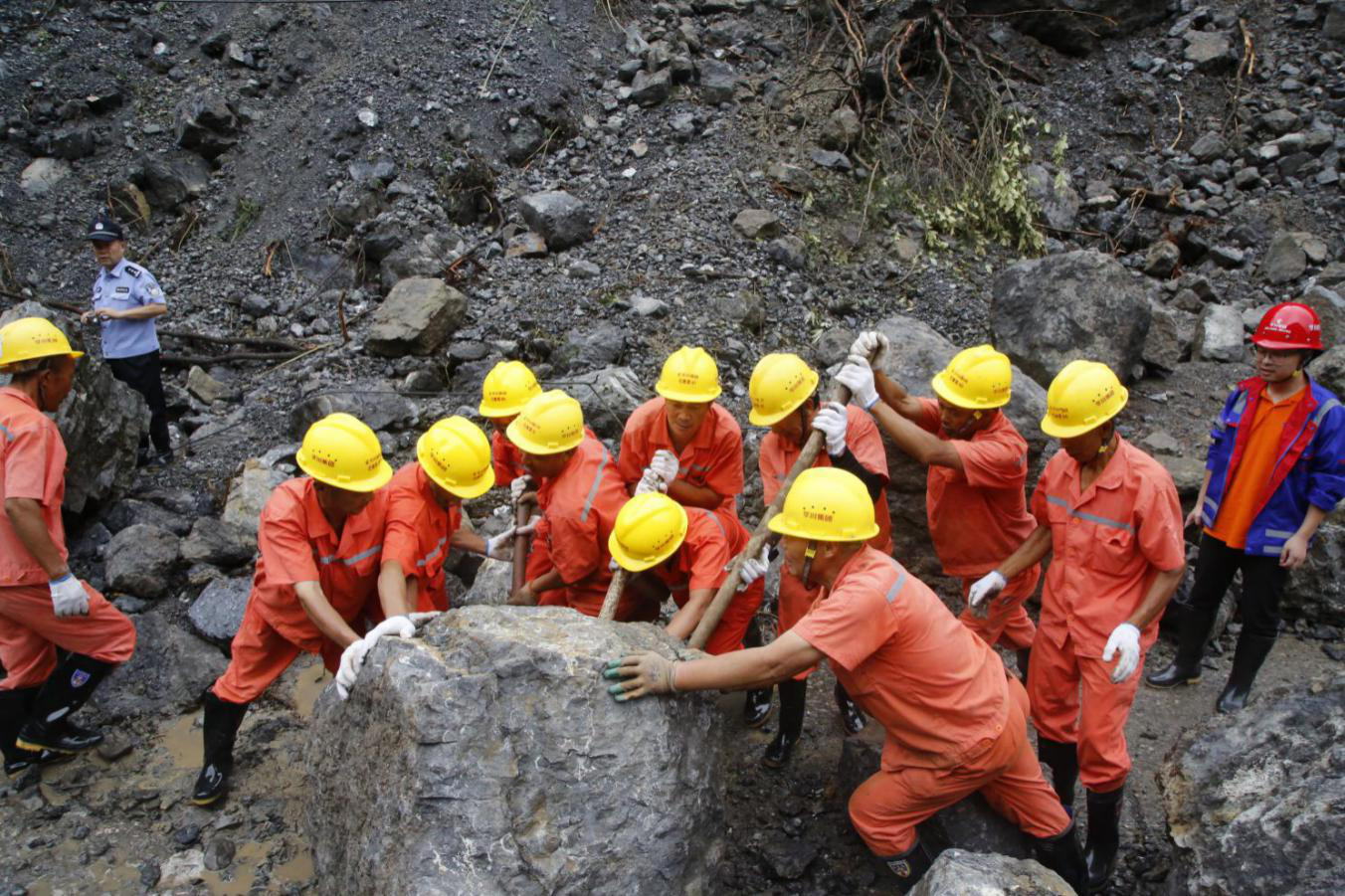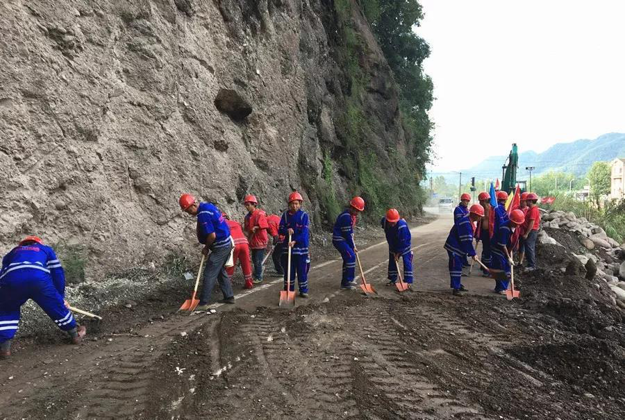 22日,集團搶險隊伍對5號山體滑坡路段進行疏通,由于后方路段損毀嚴重,重型機械無法抵達,搶險隊員們冒著不斷滾落的滑坡碎石,采用人工清理的方式,用雙手與一塊塊巨大的滑坡石體相抗,最終及時疏通出一條可供人員通行的生命通道,滯留游客和群眾于22日下午開始陸續撤離。