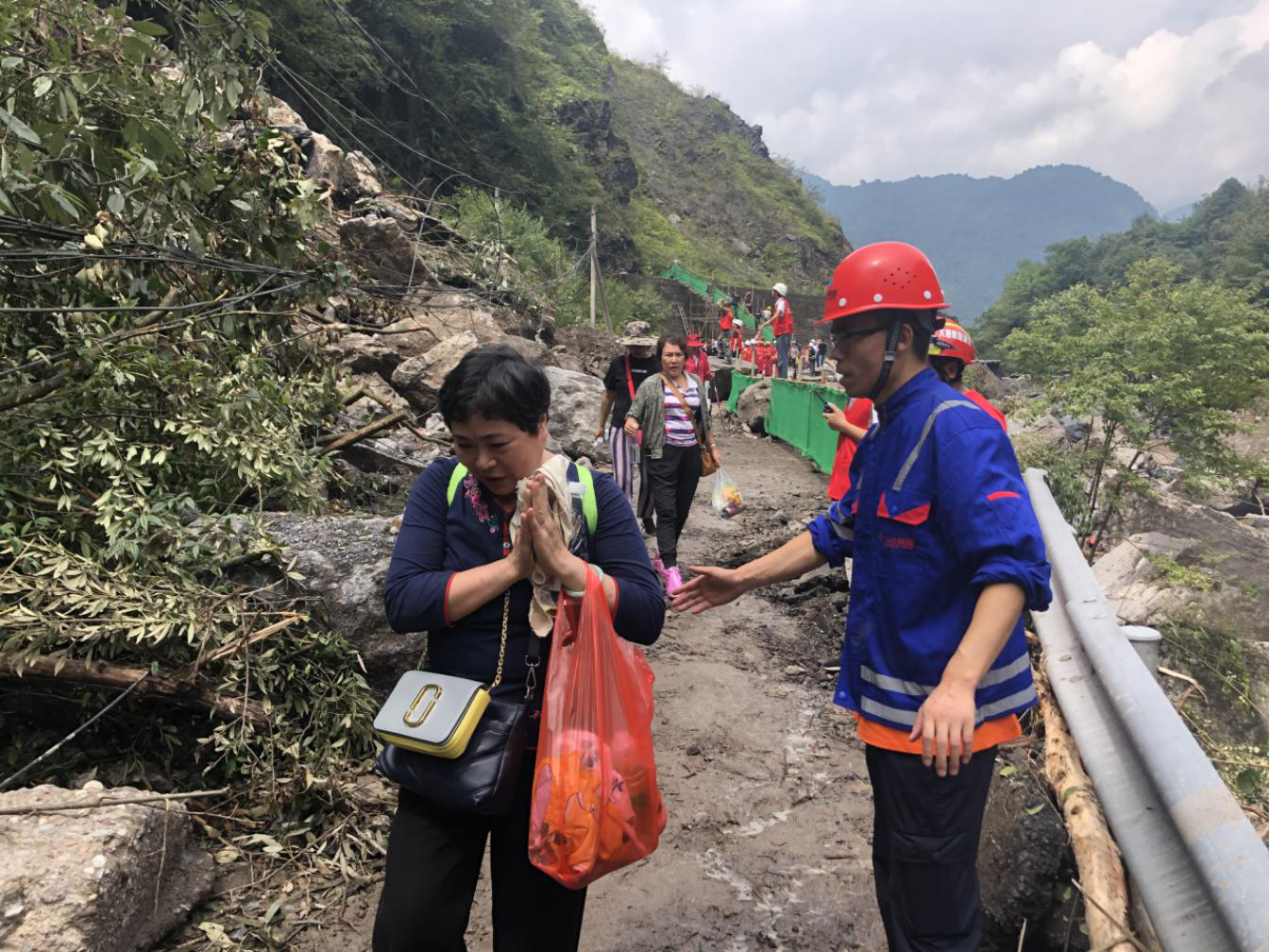 華川集團搶險隊伍護送第一批游客群眾撤離