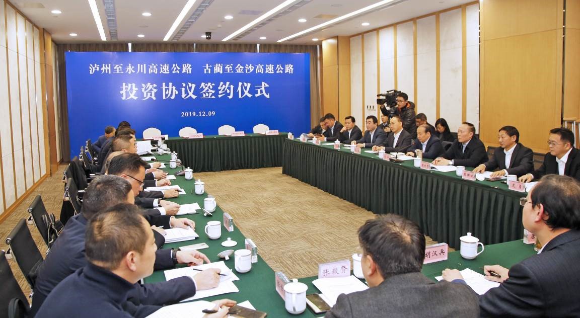 12月9日,瀘州至永川高速公路、古藺至金沙高速公路投資協議簽約儀式瀘州市人民政府駐成都辦事處舉行。瀘州市委書記劉強,鐵投集團黨委書記、董事長孫云,集團黨委書記、董事長、總裁謝應文,副董事長、常務副總裁駱小紅、副總裁楊開榮與路橋集團董事長熊國斌參加座談交流會并出席簽約儀式。瀘州市市委副書記、市長楊林興主持儀式。