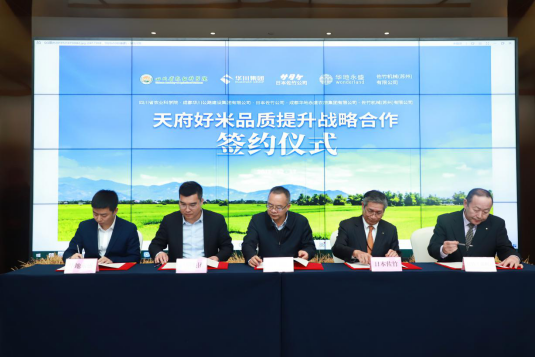 12月17日上午,四川省農(nóng)科院、華川集團與日本佐竹公司在華川天府良倉舉行了“天府好米品質(zhì)提升戰(zhàn)略合作”三方簽約儀式。四川省農(nóng)業(yè)科學(xué)院副院長張雄、日本佐竹公司中國總代表佐々木講介、華地永盛公司總經(jīng)理石小軍等人出席本次簽約儀式。