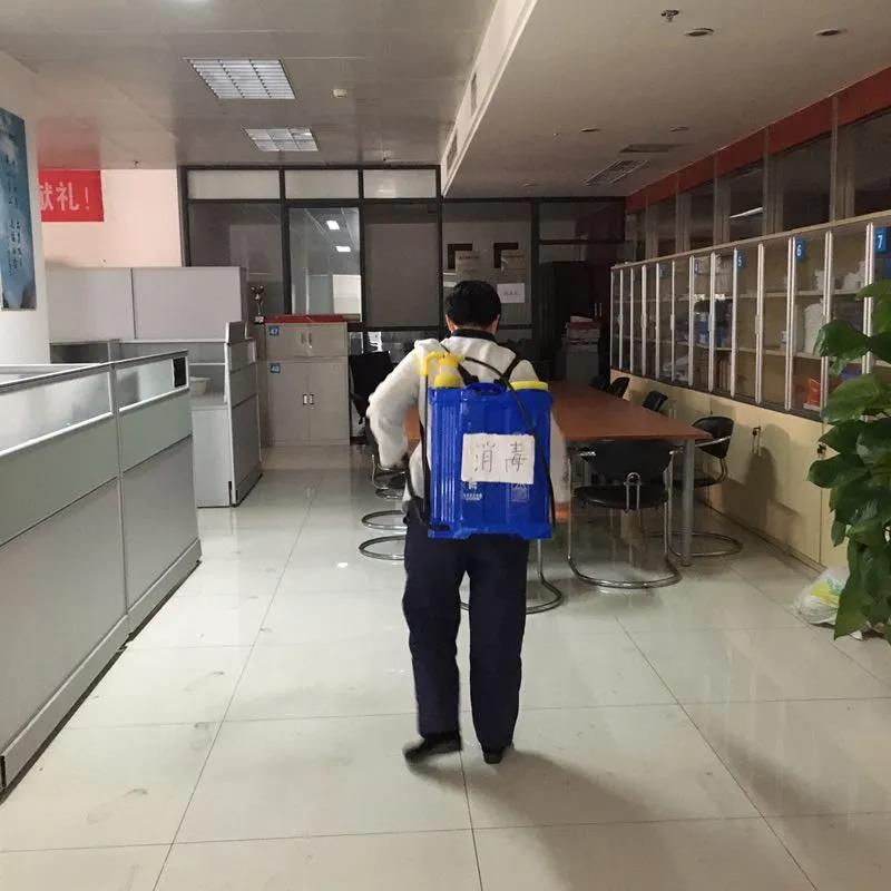 安排專人每日對集團辦公大樓進行徹底消毒,其中電梯轎廂(含內外按鍵)每小時消毒一次;一樓大廳、衛生間每小時消毒一次;其他區域每天消毒兩次;會議室使用完后立即消毒(原則上各單位、各部門均采用視頻會議,避免人員聚集);食堂每天消毒一次。為了確保消防安全,辦公區域內嚴禁以噴灑酒精的方式進行消毒,均采用抹布蘸取酒精擦拭。