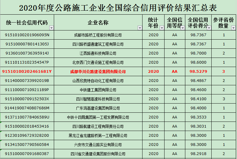 集團(tuán)連續(xù)四年榮獲交通運(yùn)輸部公路施工企業(yè)全國綜合信用評(píng)價(jià)“AA”級(jí),得分98.53分,再創(chuàng)歷史新高。