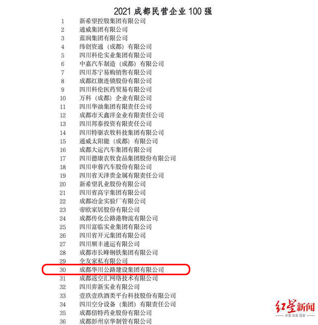 華川集團蟬聯“成都企業雙百強”榜單