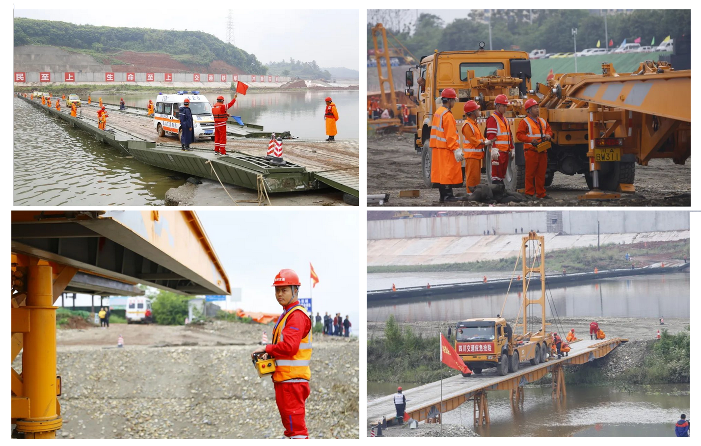 本次演練模擬眉山市發生里氏6.9級地震,震源深度10千米,廳地聯合開展交通運輸搶險救援。演練實時展示地震應急響應、災情偵測研判、緊急會商、區域聯動、交通管制和繞行方案制定發布、搶險力量調動、道路搶通保通、21米應急機械化橋+75米模塊化快速橋+81米超大跨度應急機械化橋架設、動力舟橋架設、全地形搶險救援工程車、步履式挖掘機、無人機勘察等13個科目,涵蓋橋梁坍塌、山體滑坡等可能引發道路中斷的多種形式,具有普遍適用性,貼近實戰,展現并檢視了交通運輸應急預案體系、組織指揮構架、應急能力建設等情況。真實反映交通運輸應急搶險處置全過程。
