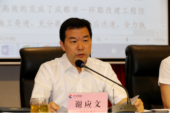 謝應文董事長發表了題為《勵精圖治,砥礪奮進,鑄就華川傳奇;居安思危,眾志成城,譜寫百年華章》的重要講話,講話分為“艱苦創業”、“跨越發展”、“乘勢崛起”、“感恩奮進”、“展望未來”五個部分。他指出,17年來,華川集團從過去的舉步維艱發展到今天,成為以路橋投資建設為主,集大健康、產業金融、生態農業等多元化產業為一體,影響力輻射全國的大型綜合企業集團,創造了企業發展奇跡。他指出,華川的成功用十個字可以概括——“責任、真誠、團結、勇敢、頑強”。他動情地說,集團的發展,要感恩這個偉大的時代,感恩改革開放的好政策,感恩支持集團發展的各級領導、各界朋友,感恩廣大員工的頑強拼搏,感恩全體家屬的理解和包容。