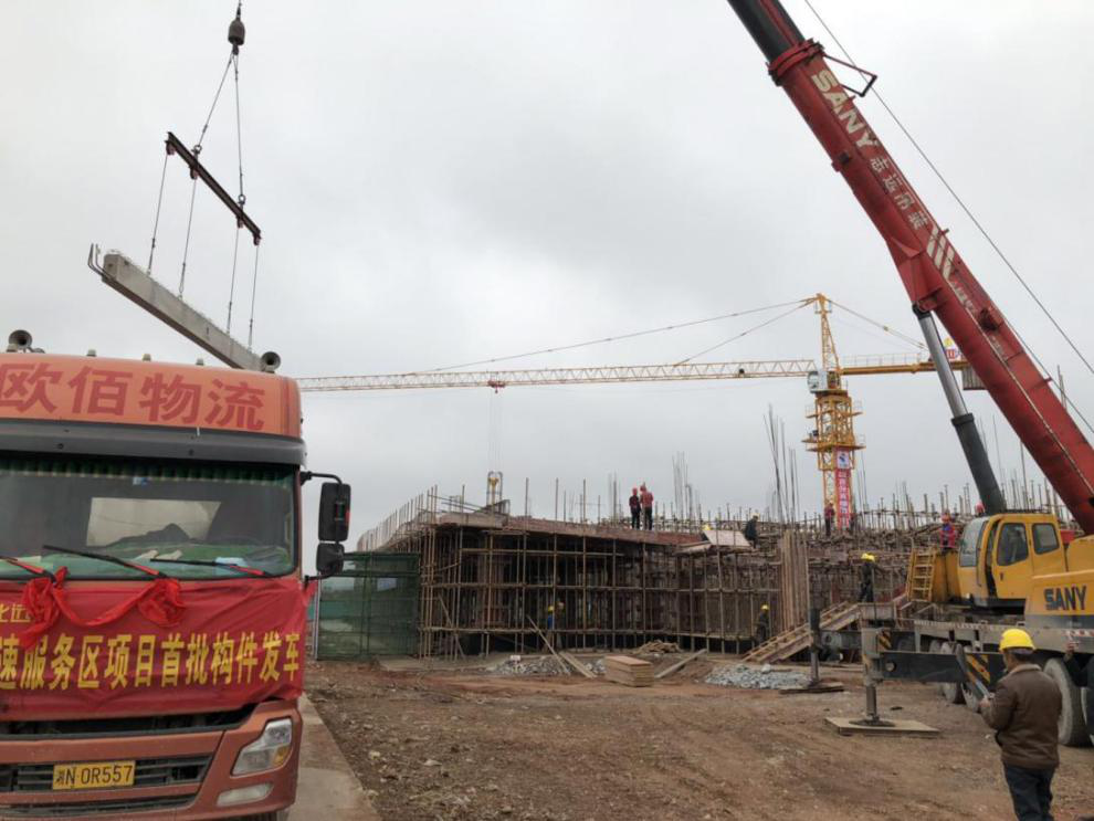 12月3日下午4時許,在清脆的爆竹聲中,在克服了層層困難后,懷芷高速房建項目芷江服務區北區綜合樓首批預制PC構件到達吊裝現場開始組裝作業。