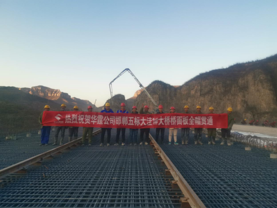 隨著年度通車目標的日益臨近,華霆公司邯鄲五標的生產進度也快馬加鞭地有序推進。12月4日,華霆公司邯鄲五標又一次迎來了關鍵性工程節點,大洼1#大橋橋面板順利實現全幅貫通。