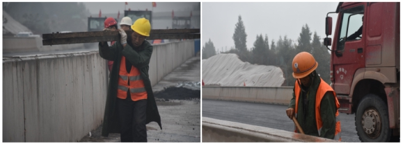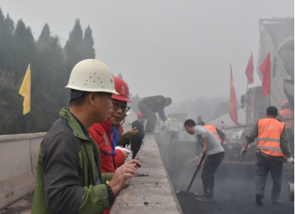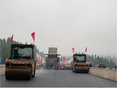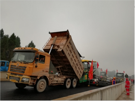觀施工現(xiàn)場(chǎng),華川旗幟高高飄揚(yáng),迎著微風(fēng),伴著小雨,1臺(tái)攤鋪機(jī)、5臺(tái)壓路機(jī)、15臺(tái)運(yùn)輸車相互密切配合,攤鋪、碾壓機(jī)器發(fā)出的聲響,奏出了一曲鏗鏘有力的“施工進(jìn)行曲”?,F(xiàn)場(chǎng)負(fù)責(zé)人及時(shí)查看攤鋪厚度,確保厚度在合理范圍內(nèi),技術(shù)員實(shí)時(shí)查看瀝青攤鋪溫度,項(xiàng)目部領(lǐng)導(dǎo)駐現(xiàn)場(chǎng)指導(dǎo),經(jīng)過(guò)各級(jí)人員的共同努力,精心組織、標(biāo)準(zhǔn)化,文明化施工,攜手完成了本次試驗(yàn)段鋪筑工作。