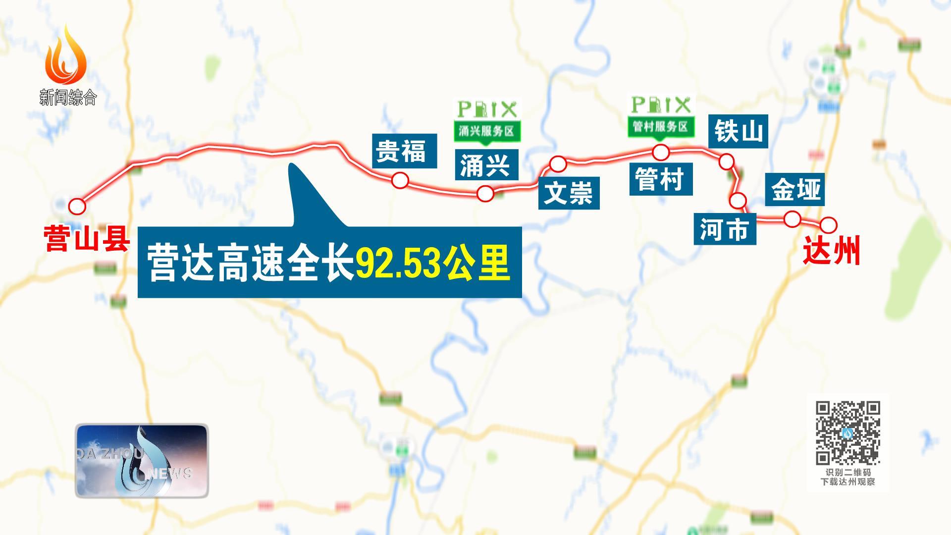 營達高速全長92.53公里,達州境內設貴福、涌興、文崇、管村、鐵山、河市、金埡七個收費站和涌興、管村兩對服務區。沿營達高速一路向西,進入渠縣境內,坐落于渠縣貴福鎮的紅色渠縣紀念園,是達州愛國主義傳統教育基地,總會有市民驅車前來觀光游覽。